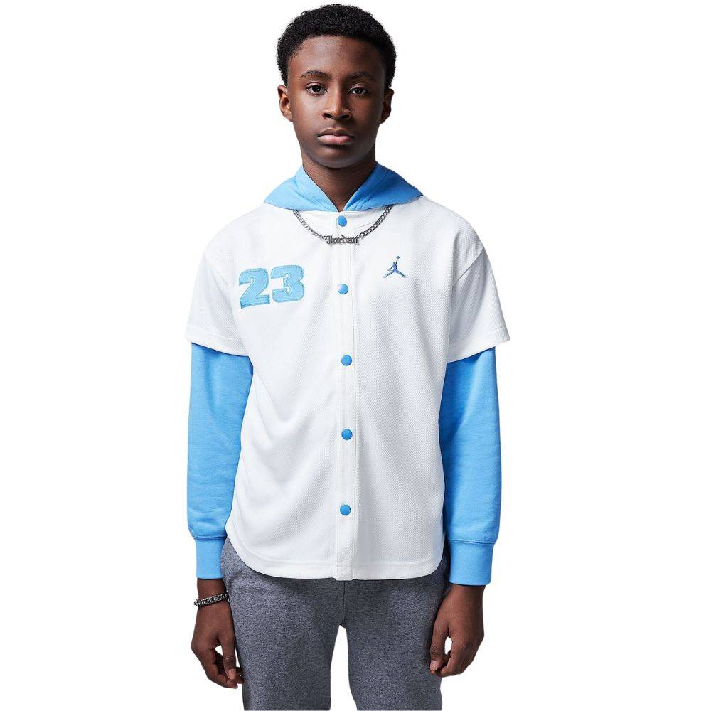 Beisbolera Jordan junior en color blanco y azul, los colores de UNC