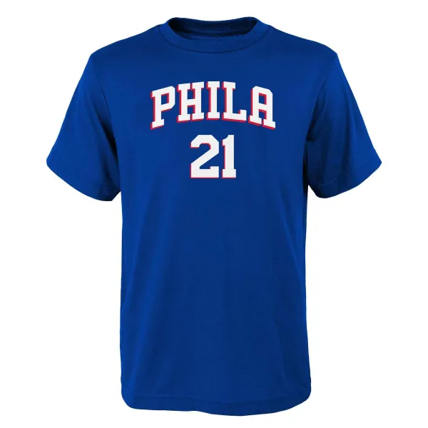 Camiseta de Joel Embiid con los Sixers de Outerstuff, marca con licencia NBA para bebés, niños y junior, una camiseta de algodón del jugador estrella de la NBA. Camiseta destinada para Juniors a partir de los 8 años aproximadamente.
