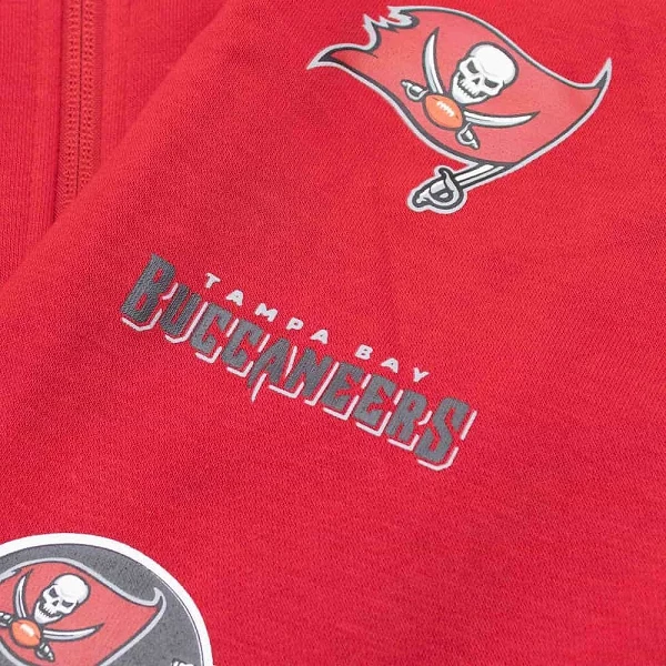 Una chaqueta con cremallera con el logotipo del equipo en el pecho y el tono de color rojo oficial de los Buccaneers , hacen de esta chaqueta el complemento ideal para cualquier aficionado a la NFL.