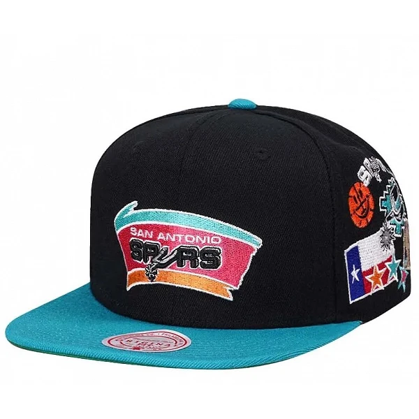 Gorra plana de los Spurs de Mitchell & Ness con logos bordados