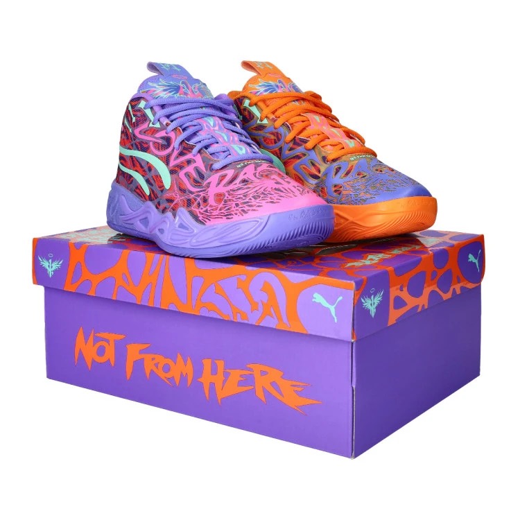 Las zapatillas de basket Puma MB 0.4 destacan por su peculiar y llamativo diseño y colorido, el icónico gráfico "RARE" en el talón resalta tu carácter ganador, reflejando el estilo y confianza que defines en la cancha.
